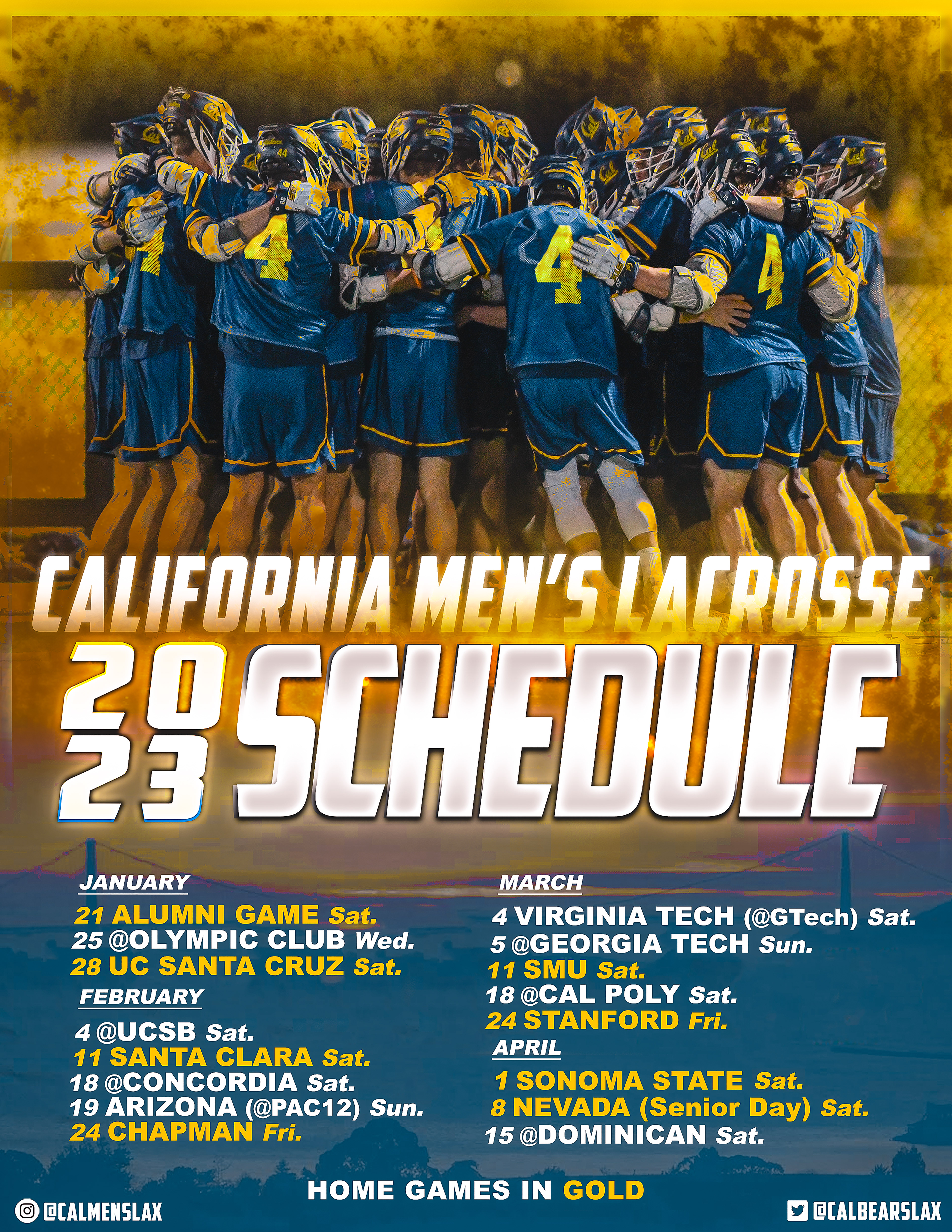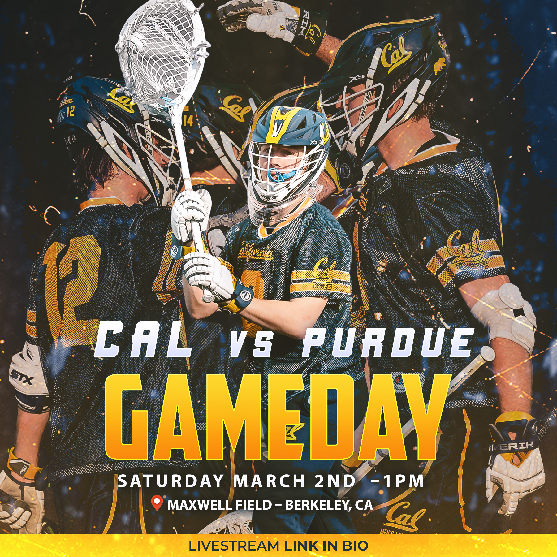 Entrusted with the team's visual identity, I produced dynamic gameday graphics, posters, and flyers that significantly boosted the Cal Men's Lacrosse social media channels' engagement and follower count.